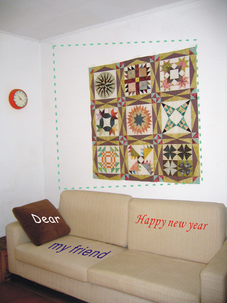 而兩片表布在壓線完成後就束之高閣了,我猜想對那時候的我來說,這個作品已經結束了。這種狀態對我來說一直存在,當作品的興奮點過了之後,總會等不及想展現新想法,而之前的作品就被堆置到心底和空間不顯明的角落中,除非等到大動作的整頓,才會被發現其存在。